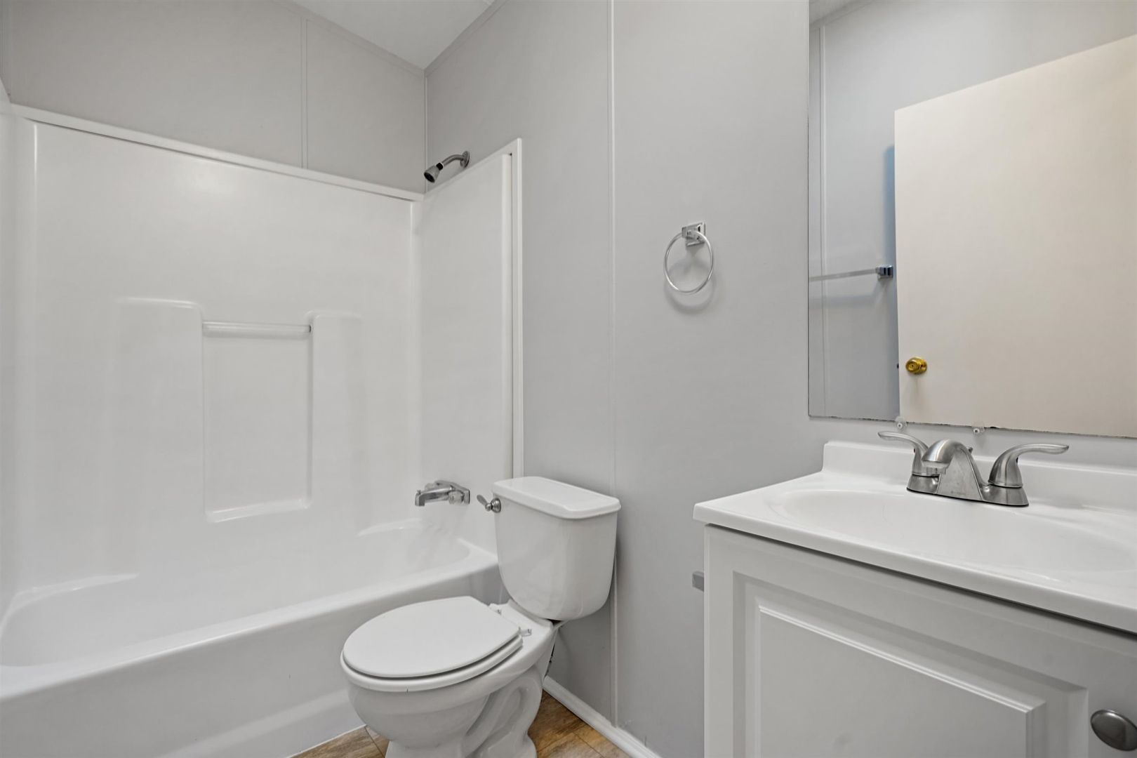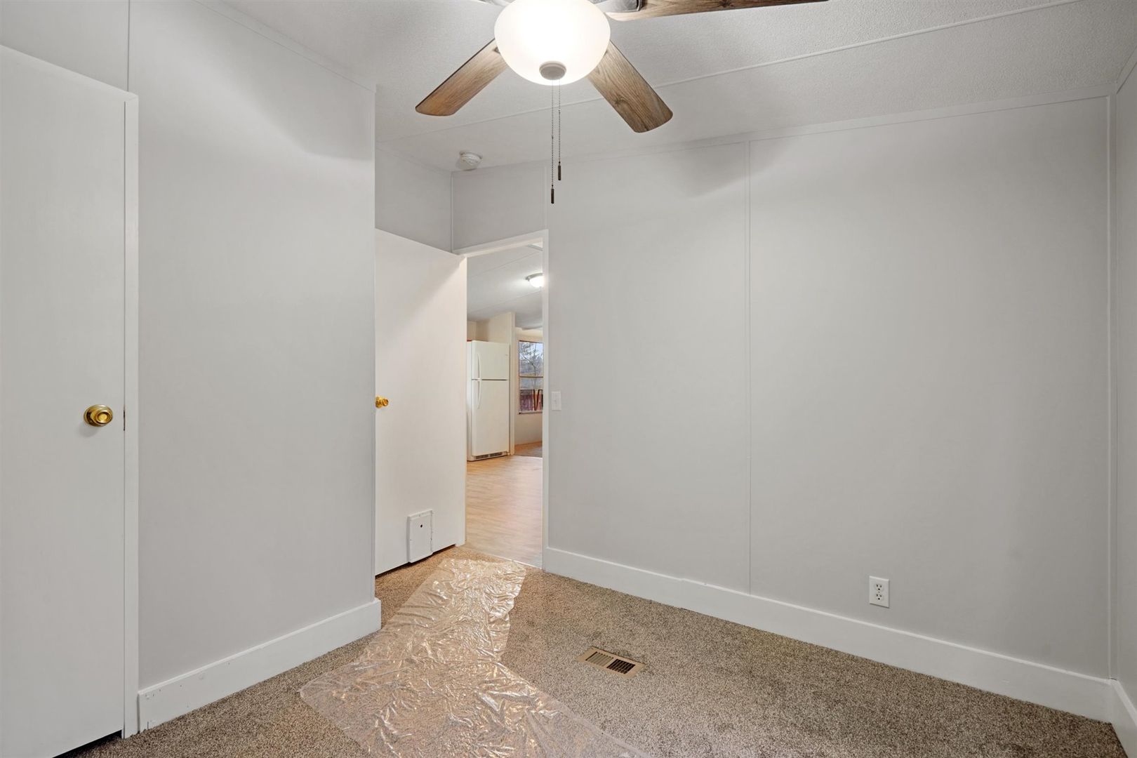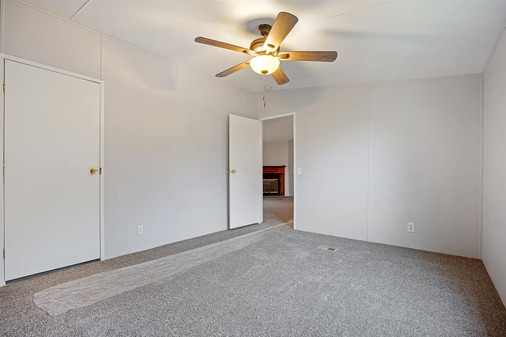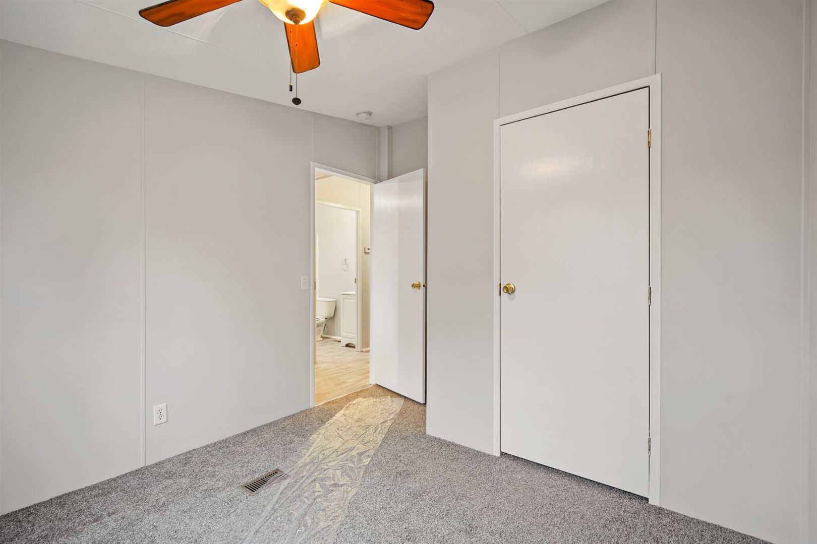 Each carpeted bedroom provides comfort and warmth, while the home’s two bathrooms offer flexibility and luxury. One includes a tub/shower combo, and the other features a spacious walk-in shower and a large soaking tub—perfect for unwinding after a long day.