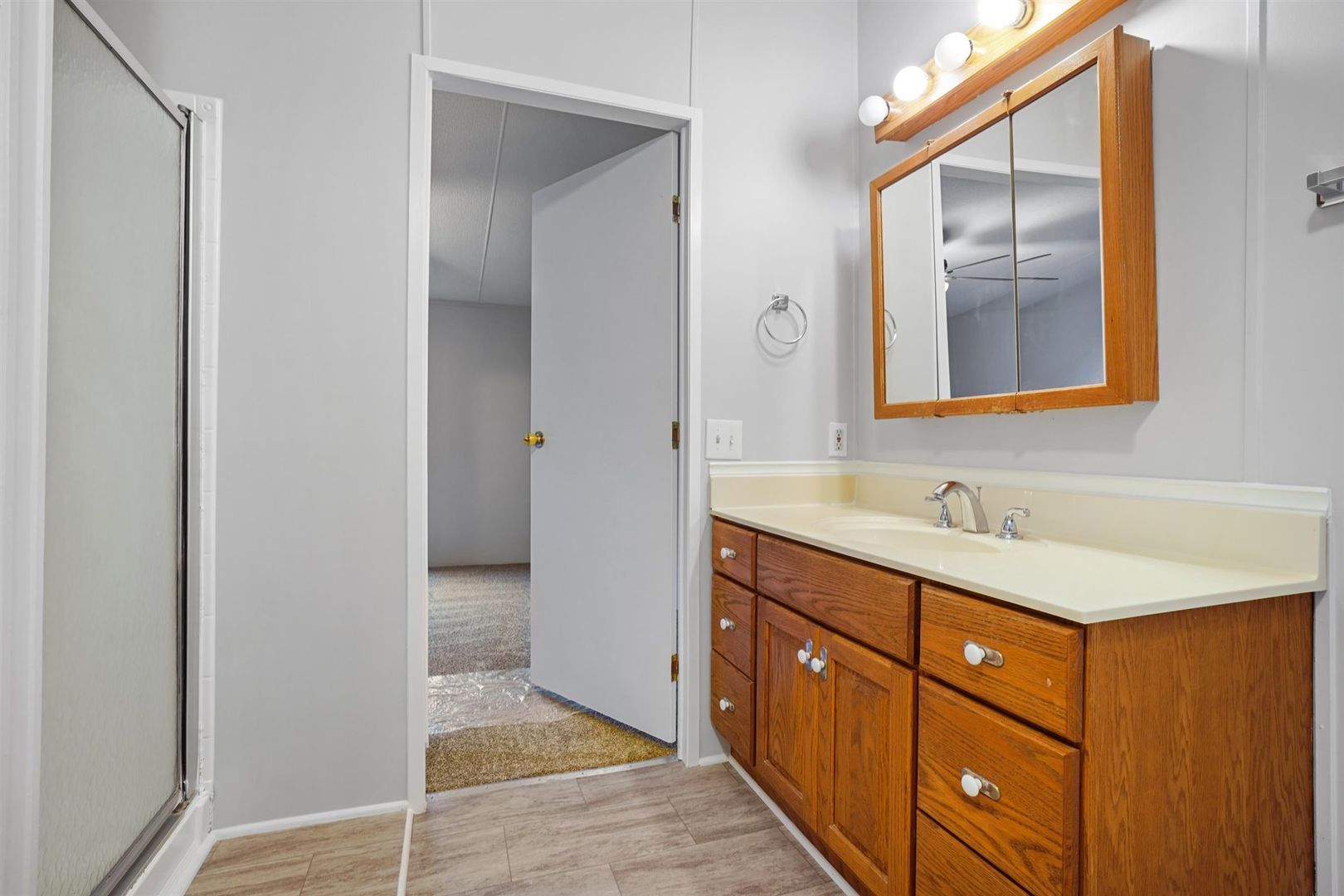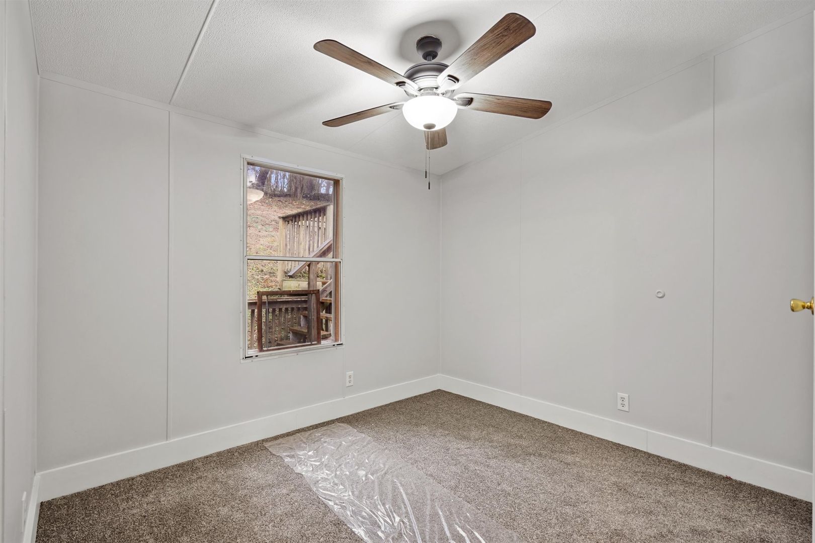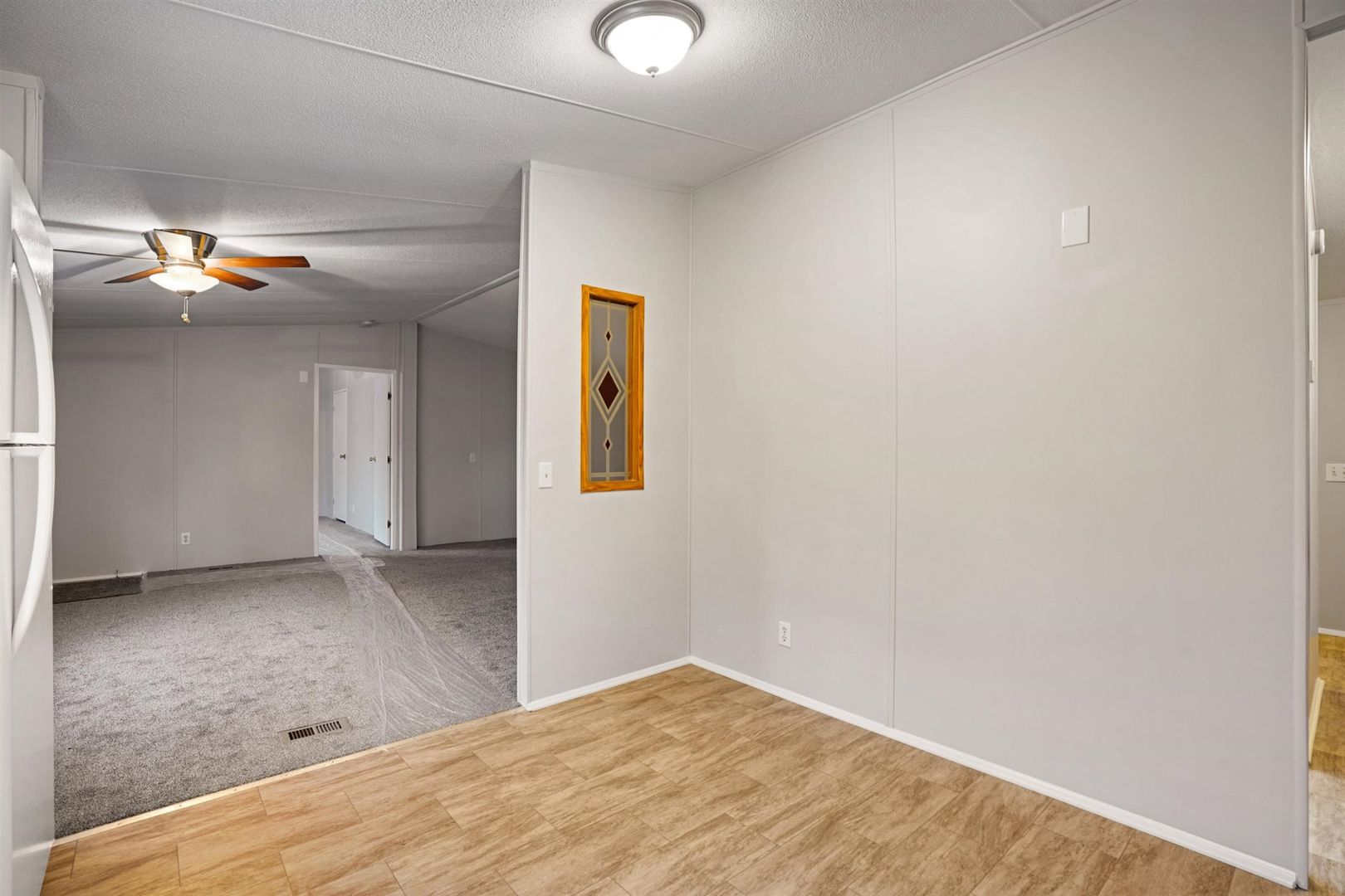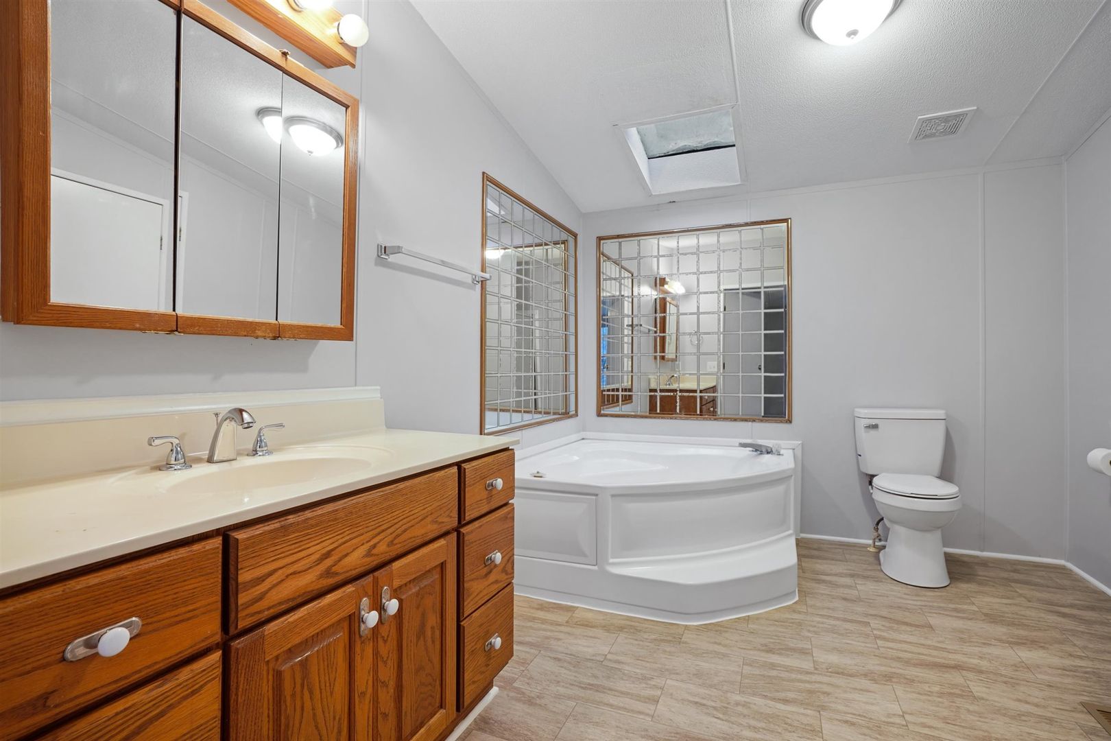 Each carpeted bedroom provides comfort and warmth, while the home’s two bathrooms offer flexibility and luxury. One includes a tub/shower combo, and the other features a spacious walk-in shower and a large soaking tub—perfect for unwinding after a long day.