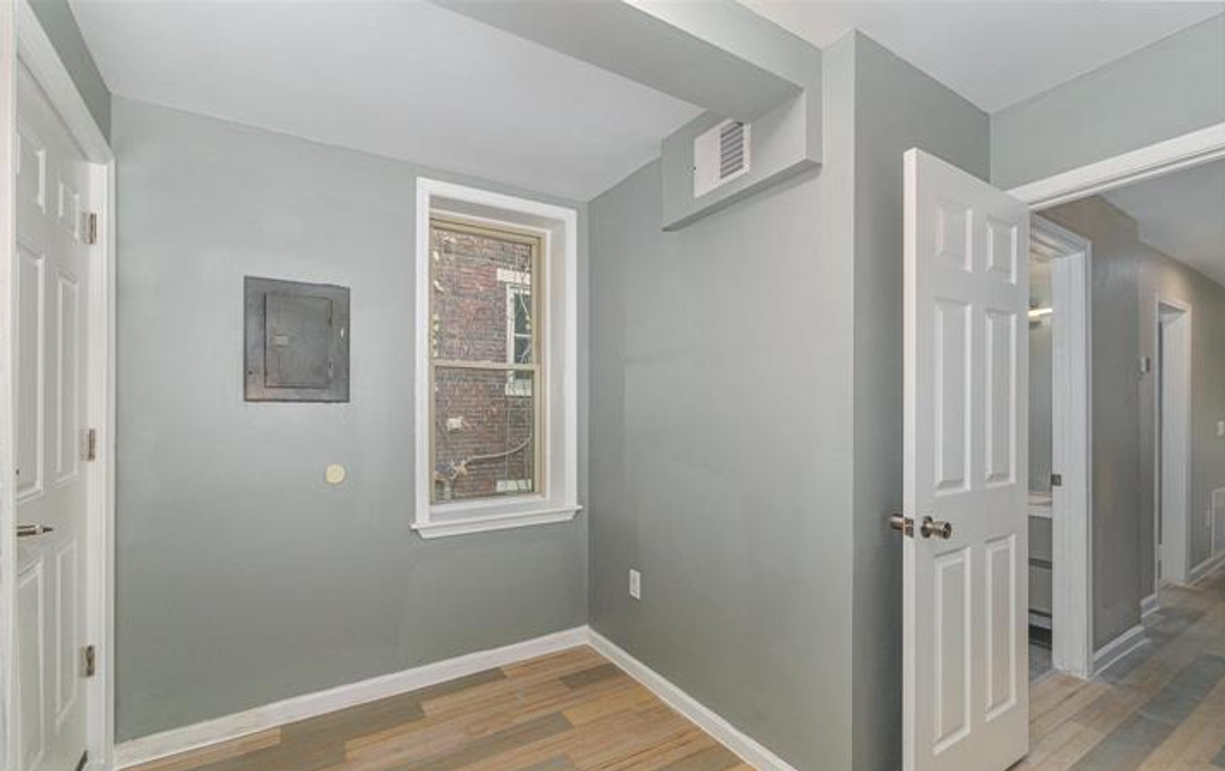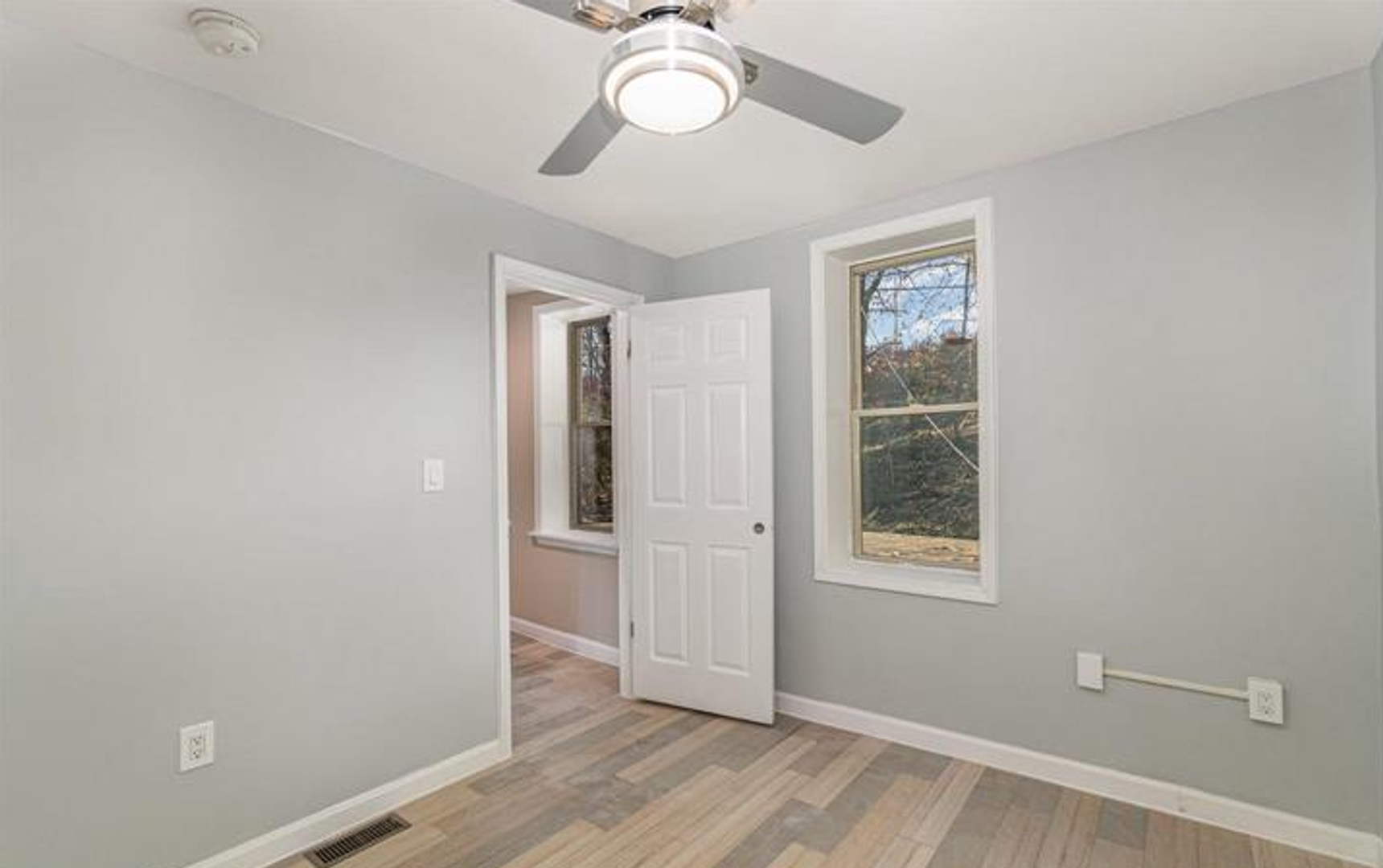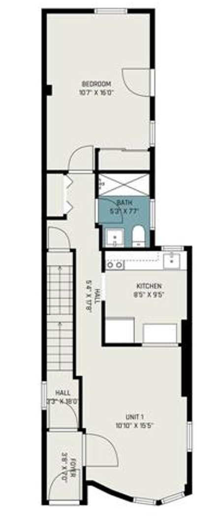 The bathroom includes a walk-in shower for easy access and a clean, modern feel. You’ll also enjoy the comfort of central air throughout the home.