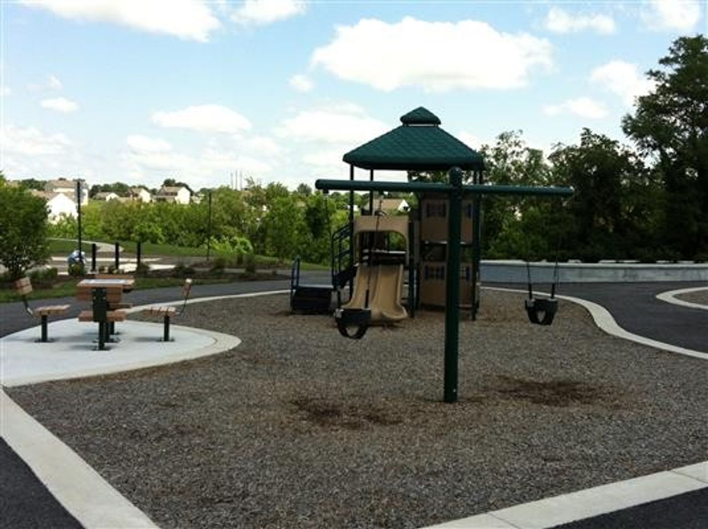 Additional features include an unfinished basement for extra storage, washer/dryer hookups, central air, and a 1-car garage for convenience. Step outside to enjoy the community amenities, including walking paths, a playground, and a pavilion—perfect for family fun or outdoor gatherings.