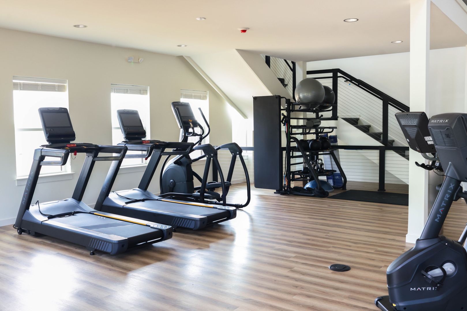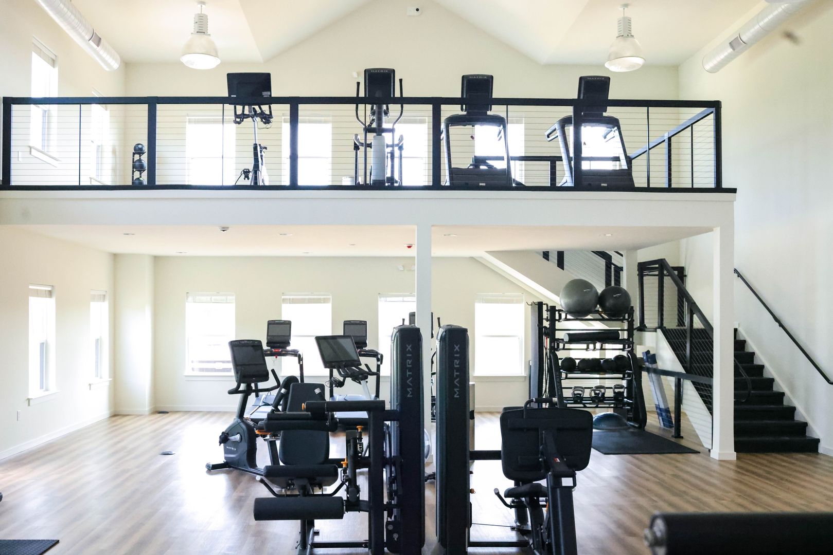 Two-story fitness center with modern equipment