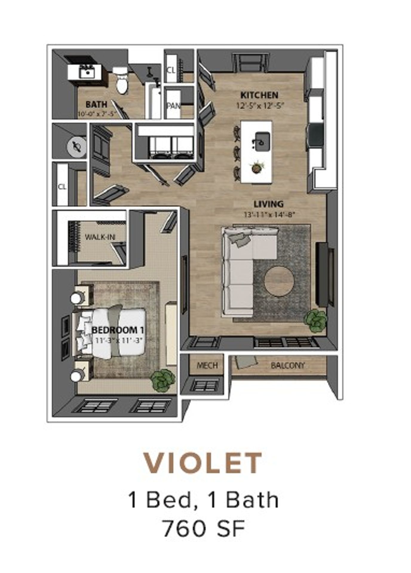 Violet 1 Bed 1 Bath Luxury Apartment