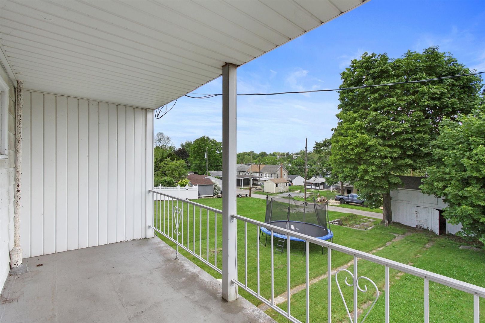 Additional living space is available in the finished attic, perfect for an office, playroom, or extra storage. Enjoy the outdoors on your private back covered balcony, covered side porch, and covered front porch, all overlooking a large shared backyard. A detached garage/shed provides convenient storage, and central air keeps the home comfortable year-round.